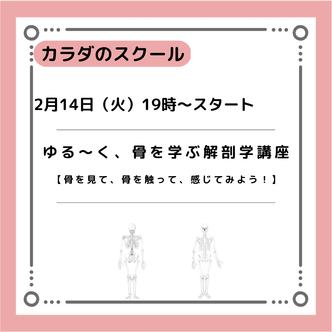 ゆる〜く、体を学ぶ解剖学の講座【骨を知って、触って、感じてみよう】を行います。