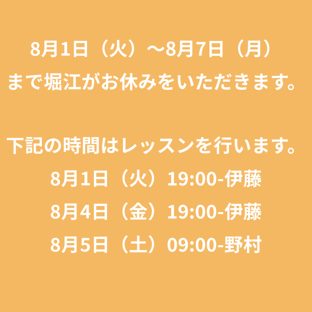 第二子出産のため、8月1日(火)〜7日(月)まで堀江が1週間のお休みをいただきます。
